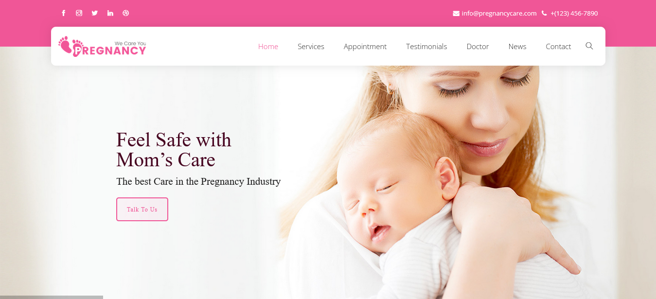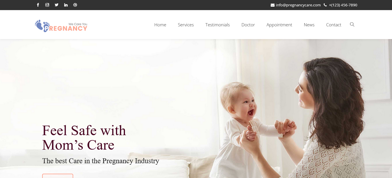 Maternity clinics, individual doctors, baby product stores, and pregnancy bloggers can all use this template to create a professional and attractive website.